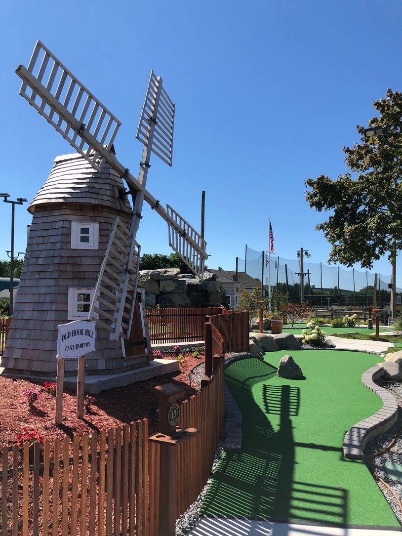 This is a brand new 18 hole mini golf featuring historic landmarks from the Hamptons. Start your round next to the Conscience Point Rock and make your way around Dune Road and then on to the Watermill Museum. Make the turn and start the back 9 with the beautiful Montauk Lighthouse in the background, and then try for a hole in one on the Hook Windmill hole. Our mini golf also features a giant waterfall in the middle of the course that streams down to ponds throughout the course. Bring the family and enjoy the fresh air and beautiful Hamptons scenery!